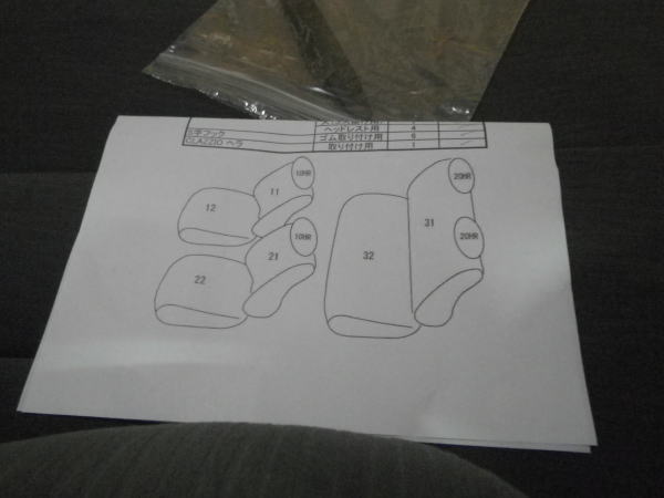 取り付け説明書 フロントのヘッドレスト リアのヘッドレスト 運転席・助手席 ナンバーが違うので微妙に違うらしい。 カバー裏のタグを良く見て取り付け ヘッドレスト こいつは簡単 しかし、微妙に縫製が 形に添っていない 縫い難いと思うので仕方がないが 許容の範囲です |