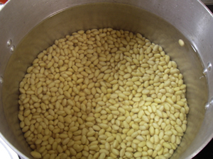 大豆を炊いた煮汁は少し残しておいて
