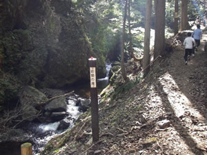 天滝までやっとたどりつきました。 ここの滝ではすれ違う人が皆挨拶をしながら上り下りしています。 天滝までにもいろいろな滝があるのですが距離は結構あります。 でも気分良く滝に向かうことが出来ます。 |