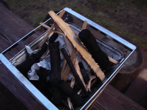 火持ちがよいように太目の木を用意します