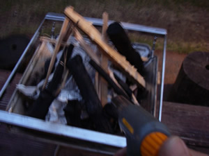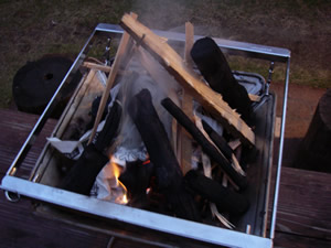 注意! 炭に火が着くと火種の上にどんどん炭を置いていく人がいますが 逆に火が消えてしまいます。空気が通らないので。 井型に組んだり立てかけて空気が遠る様にしましょう!