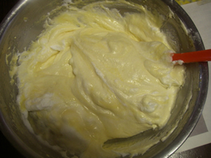 それをゴムベラで混ぜます。 |