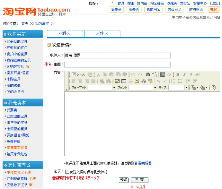 タオバオ(taobao)の登録をすると便利な機能を使うことが出来ます。 ウオッチリストに登録したり出品者にメールしたりなど! 今回はメールの使い方を解説します。